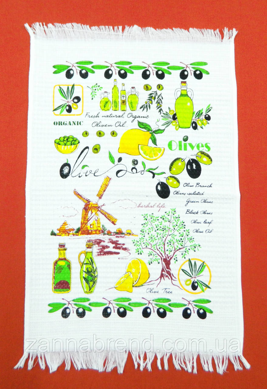 Рушник вафельний 42*60см молочного кольору принт "Оливки"