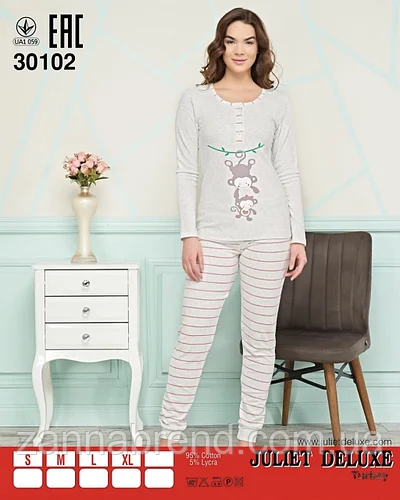 Трикотажна тепла піжама колір молочно-сірий меланж "Мартишки"